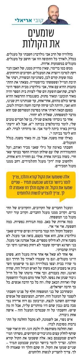 - טור של קובי אריאלי על אבי בעיתון ישראל היום