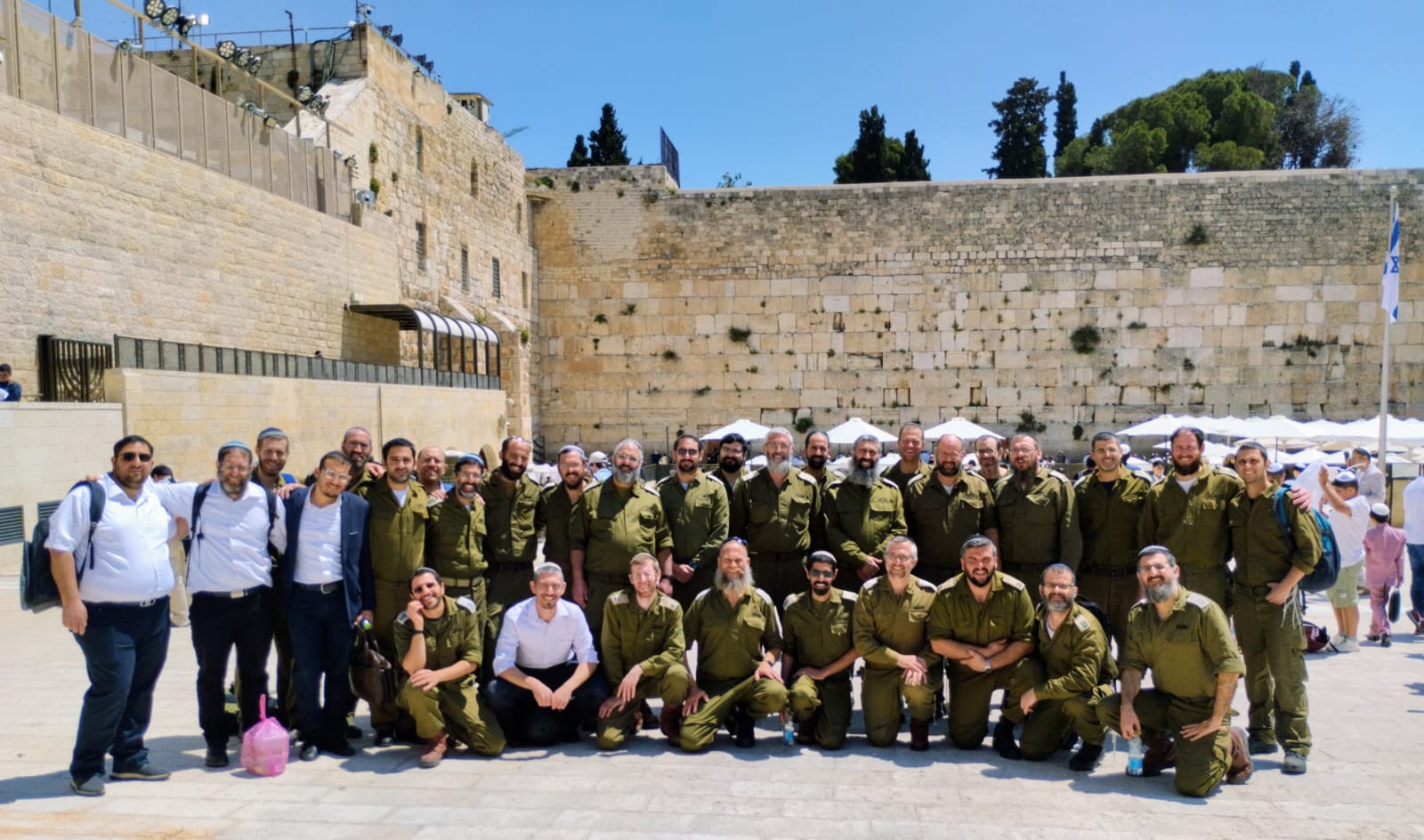 כתבתי: "הרב אבי גולדברג עם הגדוד שלו לקראת יציאה למלחמה, נושא תפילה."
