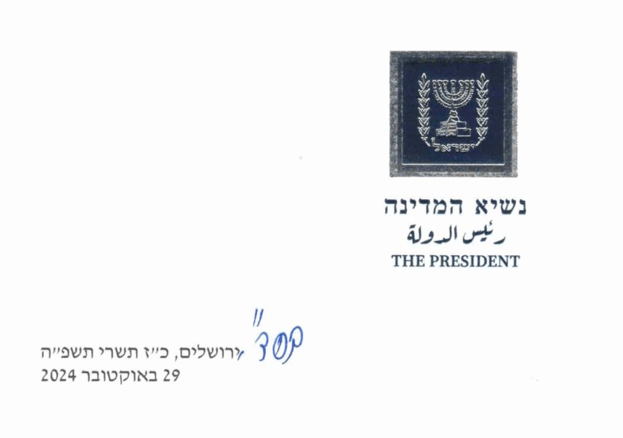 הודעה מדיוויד קופר, נשיא הקהילה בממפיס, בה משפחת גולדברג היתה בשליחות שלוש שנים. נשיא הקהילה שלח עם הישמע דבר הבשורה הקשה. Dear Rachel, There