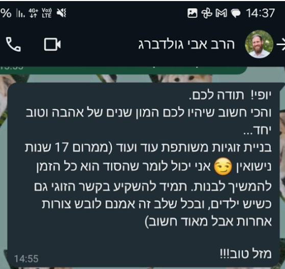 הכרנו את אבי, הוא בעצם חיתן אותנו. אני זוכרת שהגענו אליכם הביתה וישבנו במרפסת, זה היה בשיא הקורונה, בספטמבר לפני ארבע שנים. ישבנו אצלכם